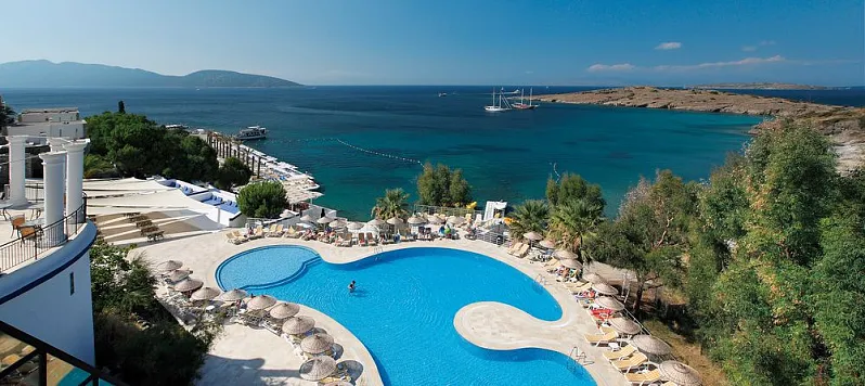 This hotel is located near the centre of Bodrum on an area of 57.000 sqm, with a view of Kos Island, Bodrum fortress and the centre of Bodrum. Renovated in 2010, this city hotel has a total of 245 rooms located either in the main building or spread across the grounds. The hotel is set on a hillside and may present a challenge for some visitors with reduced mobility. The grounds feature a swimming pool, as well as a poolside snack bar where guests can enjoy a light snack or a refreshing drink. Visitors have the opportunity to use the massage services and fitness area while staying at the hotel. Sports fans are able to train in the gym. Guests can participate in the daily activities organized by the hotel or try their hand at various water sports.