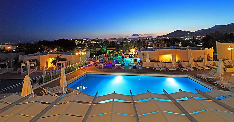 Located in the bustling, cosmopolitan Bodrum, the hotel complex is just 300 metres from the centre of the resort, while the charming town beach is even closer – only 200 metres away. Built in the classical Bodrum white and cubist style, this elegant establishment offers and extensive and beautifully tended outdoor area with 2 large outdoor swimming pools and a play area with ping-pong and billiards tables. The on-site restaurants serves delicious breakfast and dinner from an open buffet, while for lunch, guests can choose from a carefully selected à la carte menu of authentic local delicacies and familiar international dishes.