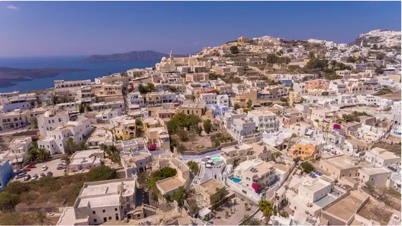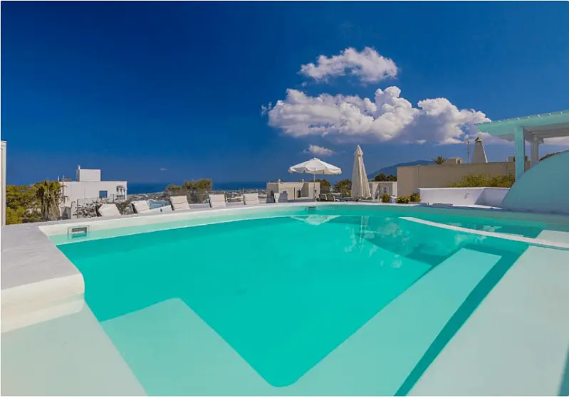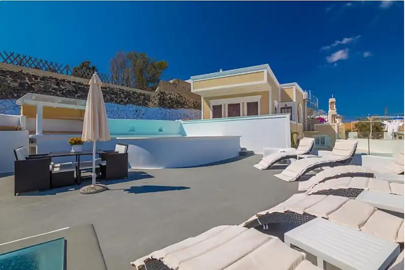 You’ll be only 5 minutes walk from the centre of Fira (Fira square), 5-7 minutes walk from the Caldera and you can enjoy views of the sea from our very own rooftop with communal pool and sun loungers.