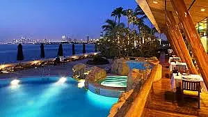 Hotelul Burj Al Arab se afla intr-o cladire in forma de vela, cu inalțimea de 321 de metri și ofera suite de lux, cu fereastra din podea pana in tavan, cu vedere la coasta din Dubai. Hotelul are centru spa cu servicii complete și 8 restaurante și baruri.
