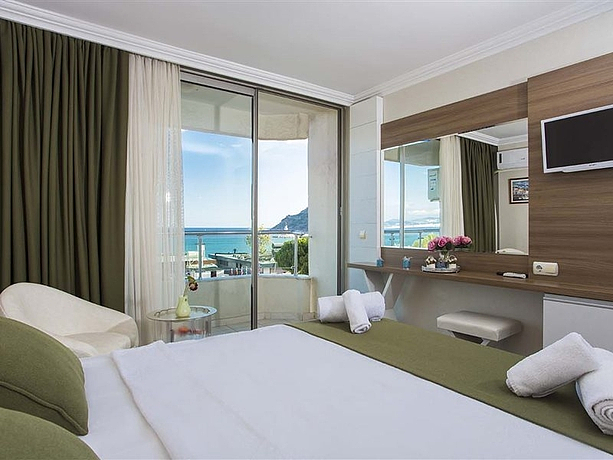 HOTEL: Este hotel acogedor y urbano, con climatización, reformado en 2007, cuenta con 5 plantas, 72 habitaciones, una terraza, un amplio vestíbulo con ascensores, una recepción, caja de seguridad y servicio de cambio de moneda. Además los clientes tienen a su disposición una sala de juegos, tiendas, bar, pub, un restaurante con terraza y un restaurante a la carta. También ofrece servicio de habitaciones y servicio médico. SITUACIÓN: Este hotel de encantador ambiente, se sitúa cercano al centro de la ciudad de Alanya. Cerca del establecimiento podrá encontrar bares, cafeterías, restaurantes y discotecas. A 500 metros pueden disponer del transporte público. Situado a unos 12 km del aeropuerto de Antalya. HABITACIÓN: Las habitaciones disponen de cuarto de baño con ducha o bañera, secador de pelo, teléfono de línea directa, televisión satélite o por cable y minibar. Además tienen caja de seguridad con cargo extra, radio, moqueta, cama doble, una zona para sentarse con sofá, balcón o terraza, aire acondicionado y calefacción individual. INSTALACIONES: Parte de las instalaciones del establecimiento son una piscina cubierta, tumbonas y sombrillas con cargo adicional. Los huéspedes pueden disfrutar de sauna, jacuzzi y servicio de masajes con cargo adicional. También puede usar el gimnasio, jugar al volley playa y billar. COMIDAS: En cuanto a la gastronomía el establecimiento cuenta con desayuno tipo buffet. MÉTODOS DE PAGO: Se admite American Express, Visa y Mastercard.