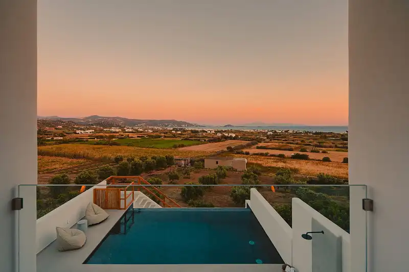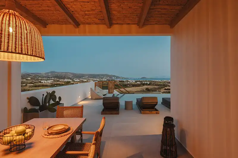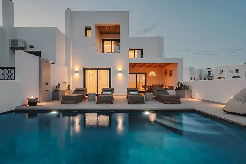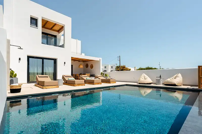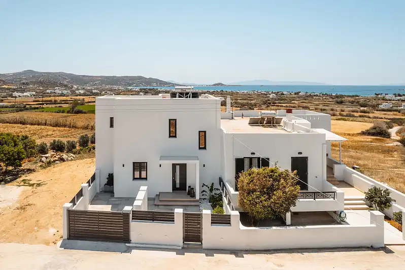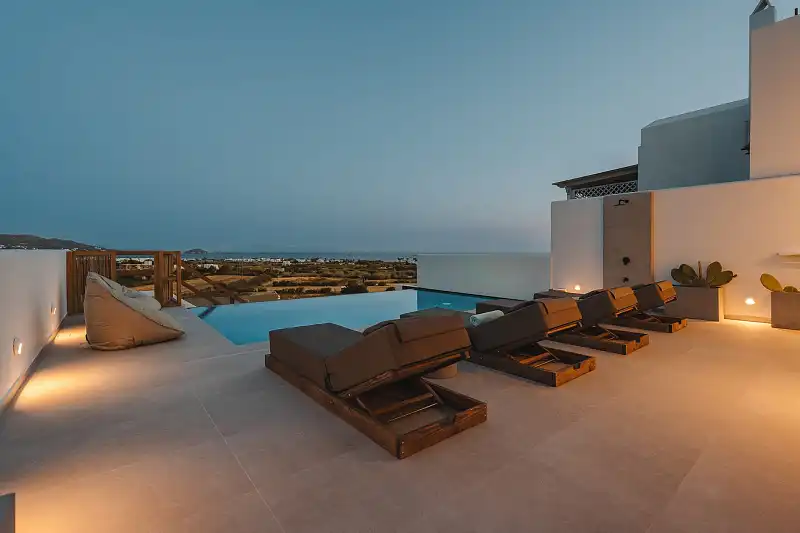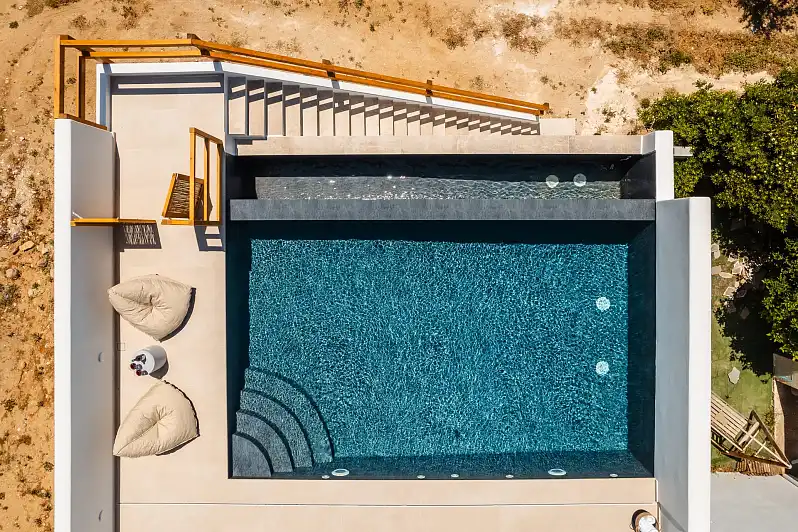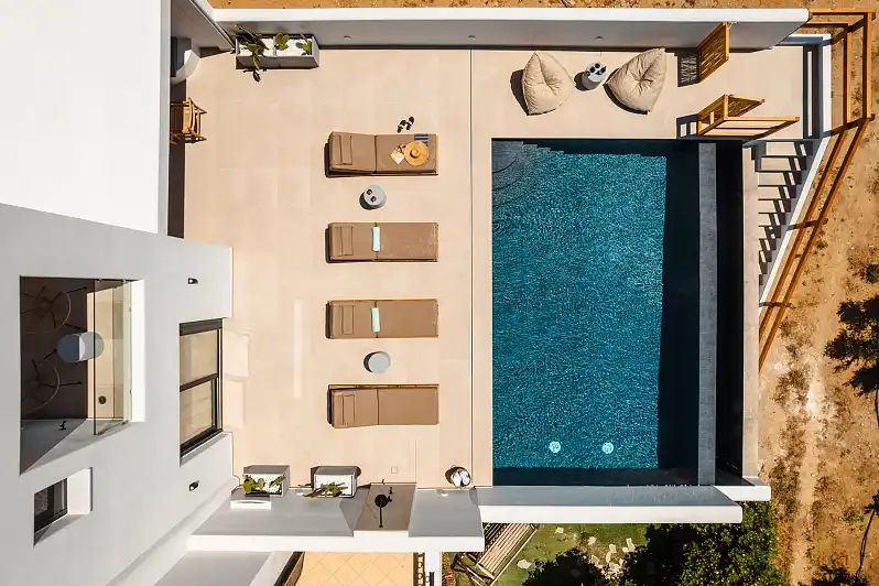 C & G villas is a luxury villa in harmony with the natural environment, with a large outdoor patio with a wooden pergola, a built-in sofa, air conditioning and an outdoor private pool. Our outdoor private pool as well as our balconies offer an impressive view that combines mountain and sea.