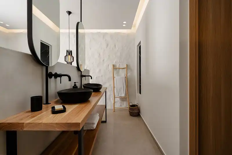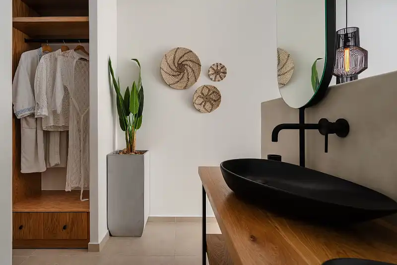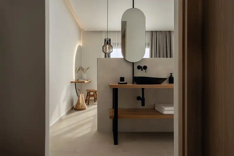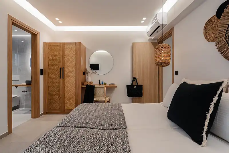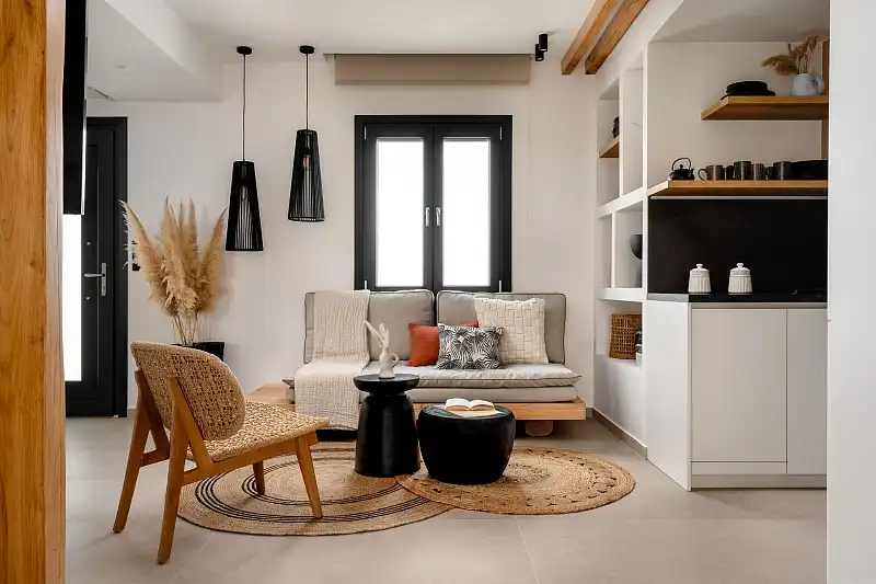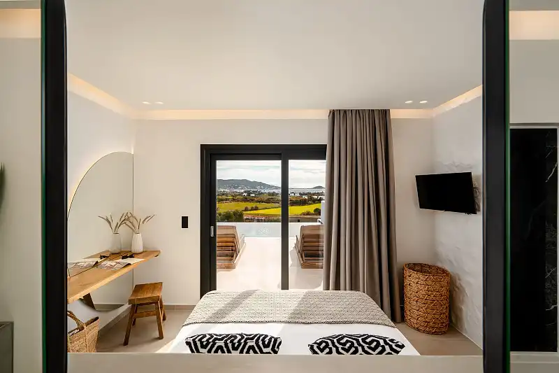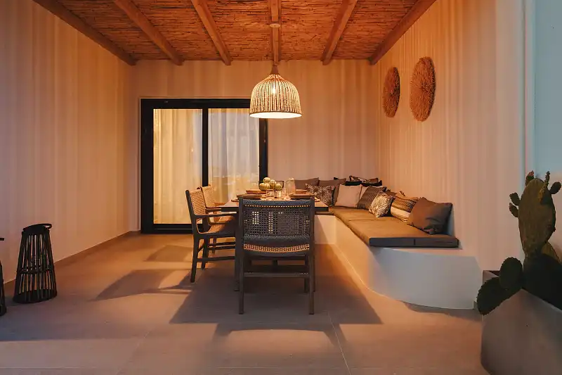 C & G villas is a luxury villa in harmony with the natural environment, with a large outdoor patio with a wooden pergola, a built-in sofa, air conditioning and an outdoor private pool. Our outdoor private pool as well as our balconies offer an impressive view that combines mountain and sea.