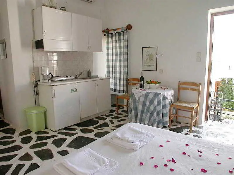 The hotel was established in 1985 and features traditional local architecture and high ecological standards. It consists of 10 apartments and 4 studios and the tiled courtyard is filled with trees and flowers. There is also a communal roof terrace, shaded with a vine-covered trellis, where guests can take in the vista over the rooftops of the village and countryside to the sea below. Facilities on offer to guests include a lobby area, a bar and a breakfast room.