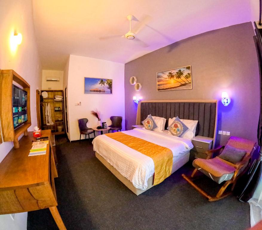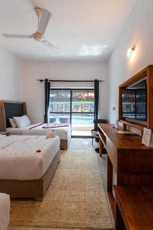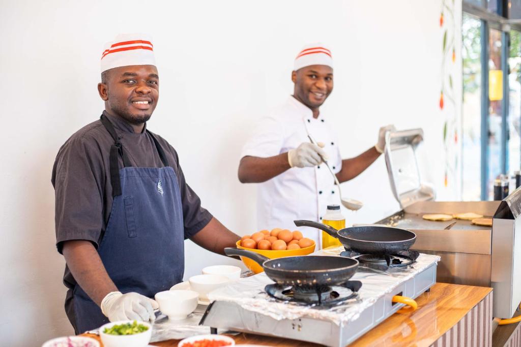 Camerele sunt decorate in stil tropical modern și sunt dotate cu aer condiționat, balcon privat și WiFi gratuit. Hotelul organizează activități precum scufundări, snorkeling și excursii cu barca pentru a observa apusul. La doar cațiva pași se află satul tradițional Nungwi, cunoscut pentru viața marină bogată și atmosfera autentică africană.