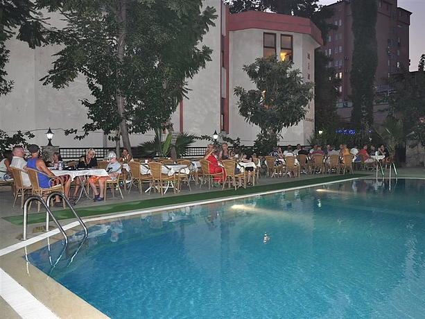 SITUACIÓN: Este establecimiento, está a unos 800 metros de la playa de Cleopatra. A 2 kilómetros del establecimiento los clientes pueden encontrar la estación de autobuses de Antalya. A 125 kilómetros está situado el aeropuerto de Antalya. Se ofrece servicio de traslado al aeropuerto, de pago directo y según disponibilidad. APARTAMENTOS: Los apartamentos tienen balcón, aire acondicionado, televisión, una sala de estar, cocina, fogones, nevera, hervidor, mesa de comedor y baño con secador de pelo. INSTALACIONES: El establecimiento cuenta con un baño turco, una piscina, tumbonas y sombrillas. En cuanto a lo gastronómico hay disponible un restaurante con servicio a la carta y un bar. Se realizan actividades como billar, futbolín y ping pong. Con cargo exra se ofrece servicio wifi.