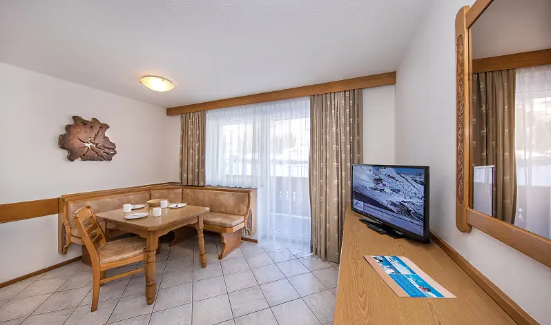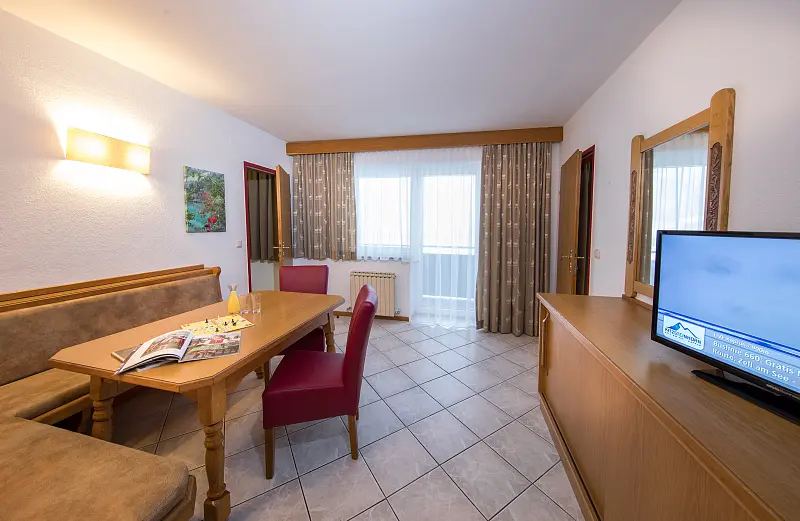 Cozy apartments with an Alpine look in a quiet and central location. Apartment guests can book and use the wellness area in the KAPOOM for a fee of EUR 15.00 per day on site. facility / Ambiance: comfortable, family friendly target audience: sport & active travellers, group travellers, nature lovers, senior citizens, young travellers, mountainbiker / bicycle travellers, families
