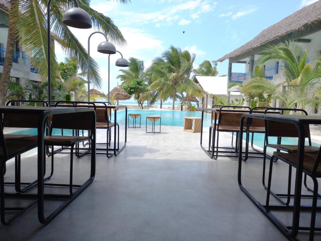 Situat pe plajă, restaurantul servește preparate din bucătăria locală și internațională. Micul dejun este servit pe terasă.