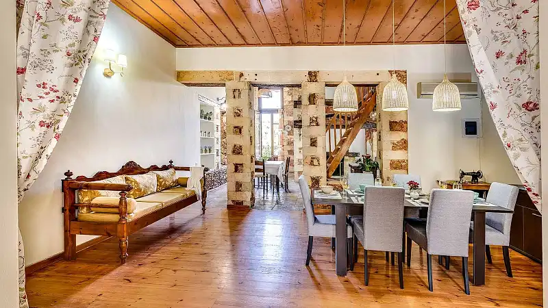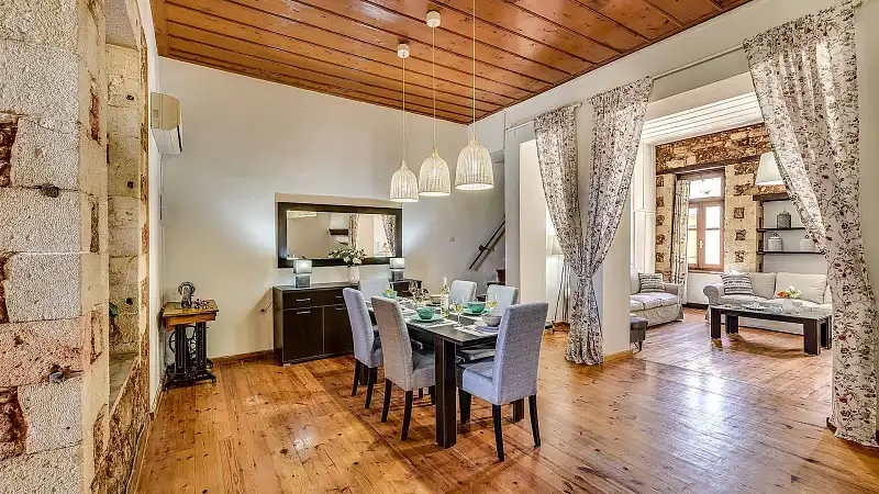 Casa Veneziana is more than just a place to stay—it's a piece of history. This 15th-century Venetian mansion, once our family home, has been lovingly restored with great attention to detail, preserving its original charm while introducing modern touches. With a spacious 170m² layout, the house offers a perfect blend of vintage and contemporary design, seamlessly combining traditional Cretan architecture with modern comfort.