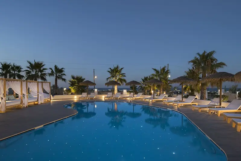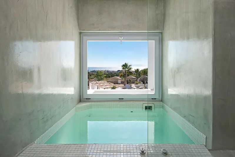 When you stay at Casa Vitae Suites in Santorini, you'll be near the beach, within a 10-minute drive of Kamari Beach and Ancient Thira. This 5-star hotel is 4.2 mi (6.7 km) from Santorini Caldera and 5.4 mi (8.7 km) from Athinios Port.Pamper yourself with a visit to the spa, which offers massages. Additional amenities at this hotel include complimentary wireless Internet access and concierge services.Featured amenities include dry cleaning/laundry services, a 24-hour front desk, and luggage storage. For a surcharge, guests may use a roundtrip airport shuttle (available 24 hours) and a ferry terminal shuttle.Unwind at the end of the day with a drink at the bar/lounge or the poolside bar. A complimentary cooked-to-order breakfast is served daily from 8 AM to 10 AM.Make yourself at home in one of the 18 air-conditioned rooms featuring minibars and flat-screen televisions. Rooms have private furnished balconies. Complimentary wireless Internet access keeps you connected, and satellite programming is available for your entertainment. Private bathrooms with separate bathtubs and showers feature complimentary toiletries and hair dryers.
