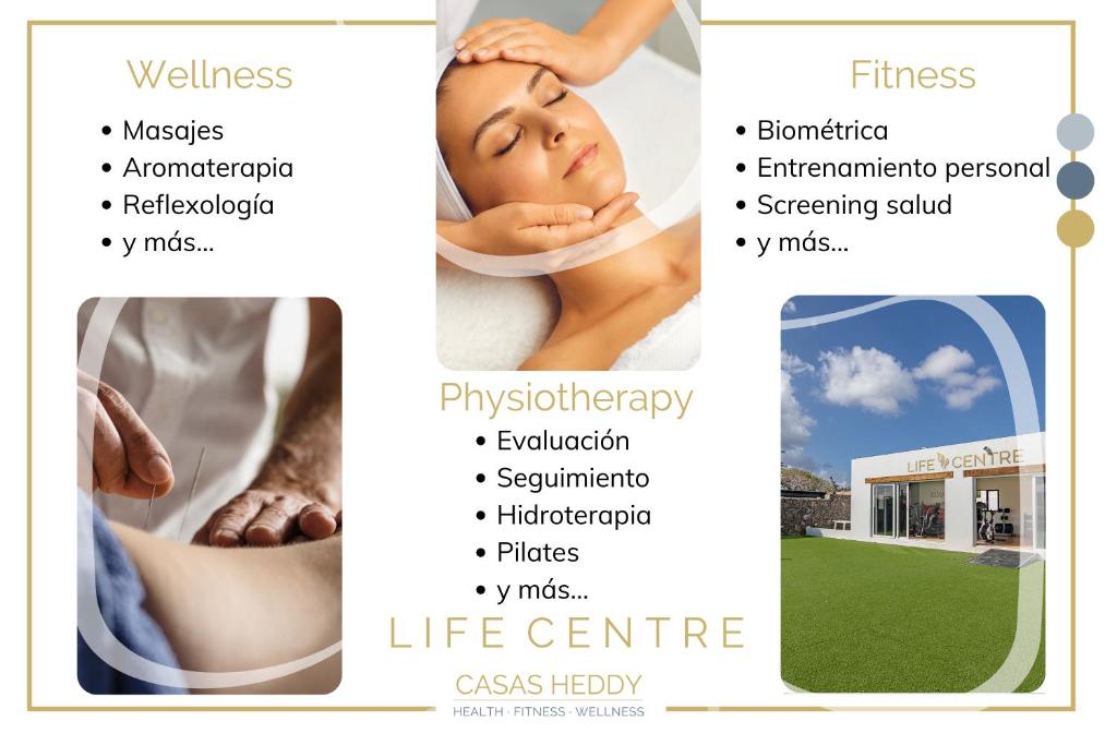 Stațiunea noastră recent renovată, Casas Heddy, Well-being Resort are un LIFE CENTER pentru a vă imbunătăți calitatea vieții. Este un Centru care are ca scop promovarea sănătății și bunăstării fiecărui client, cu indrumarea unor profesioniști de inaltă specializare: kinetoterapeuți, antrenori personali, profesioniști in wellness, nutriționist și asistent medical.