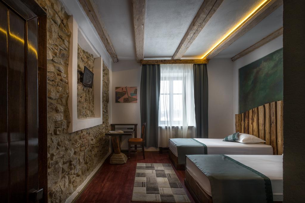 Camere: Toate camerele noastre sunt de nefumători, dotate cu televizor și acces gratuit la internet prin cablu. Băile oferă facilități și cosmetice de înaltă calitate, papuci și uscător de păr. Pentu o experiență memorabilă vă oferim și 3 camere superioare: Apartamentul cu Lebăda sau Camera Poarta Castelului cu o ambianță aparte datorită șemineului din cameră, sau Camera Constantinopol cu picturi murale din secolul al 17-lea. Camerele superioare sunt dotate cu pat dublu king-size, iar camerele standard pot fi amenajate, la cerere, în regim dublu sau twin.