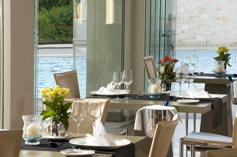 The resort offers elegant and spacious rooms and suites with private pools or outdoor jetted tubs, where guests can relax and enjoy the stunning views. The award-winning spa “Callista” offers a variety of treatments and facilities to revitalize the body and mind. The resort also features a gourmet restaurant “Origins” that serves delicious dishes prepared from finest quality, locally sourced products with a distinct flavor and fragrance. Guests can also enjoy a drink at the cozy bar “Aroma” or at the poolside lounge. Castello Boutique Resort & Spa has all the modern features and amenities for a comfortable and memorable stay, such as free Wi-Fi, outdoor & indoor pools, fitness center, 16-hour room service, limousine rental, indoor garage with private parking for each room and express check-in/check-out.