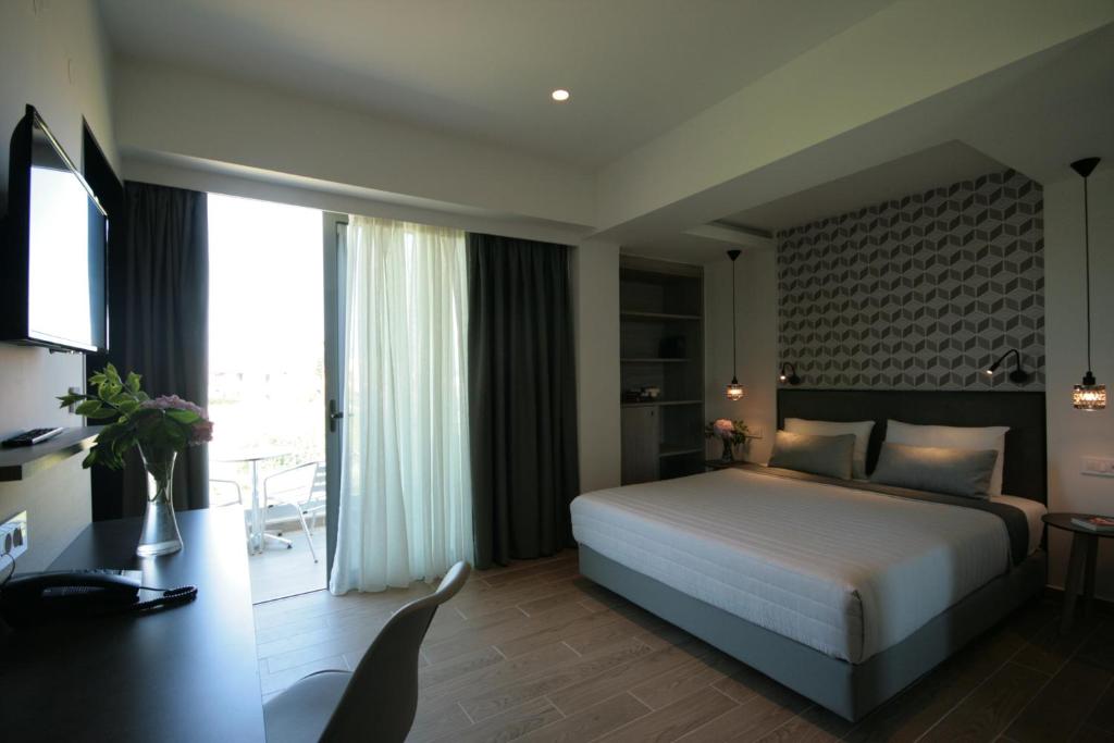 Restaurant și agrement: Hotelul are un restaurant care servește bucătărie grecească, un bar și o piscină sezonieră in aer liber. Wi-Fi gratuit este disponibil in intreaga proprietate, iar activități precum ciclism și yoga imbunătățesc experiența oaspeților.