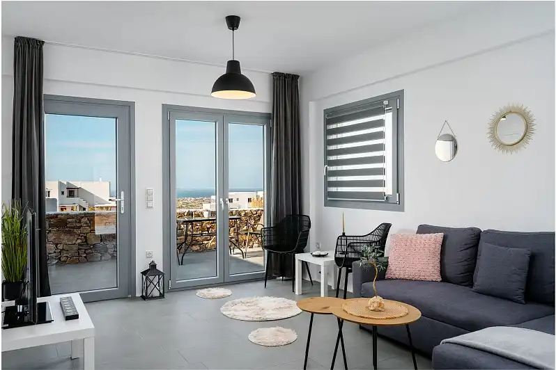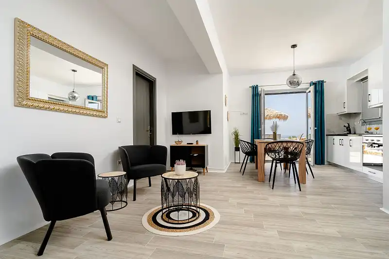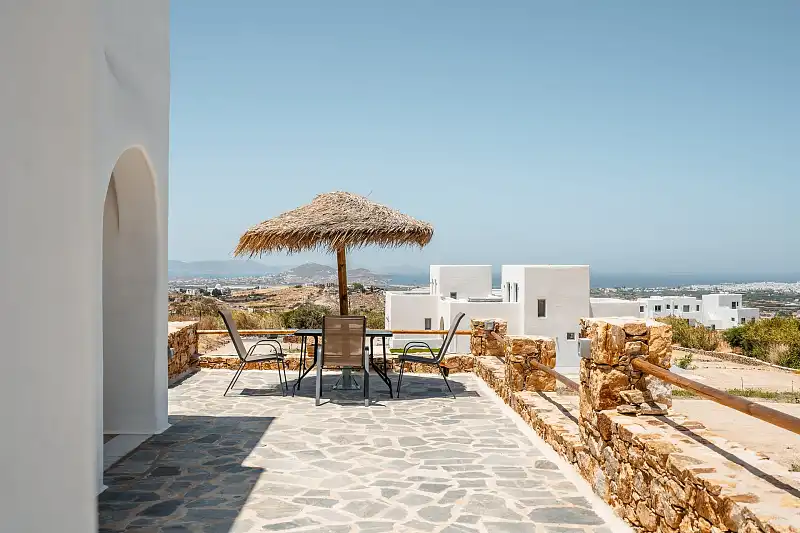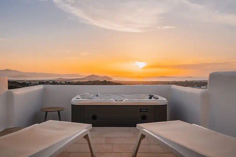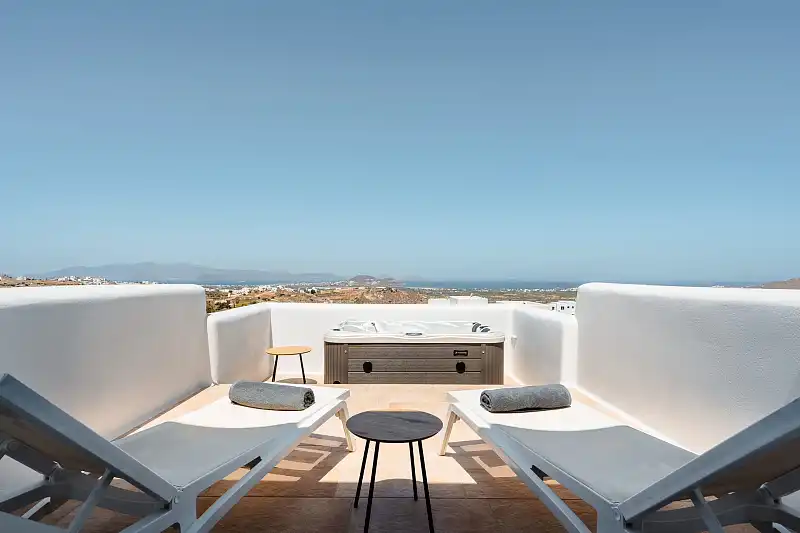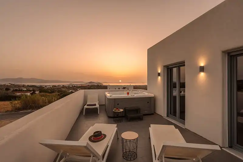 Each villa offers stunning views of the blue Aegean, while the spacious interiors create a sense of luxury and comfort. Enjoy the wonderful sunset from the private balconies or terraces of our villas, giving moments of absolute relaxation and enjoyment.