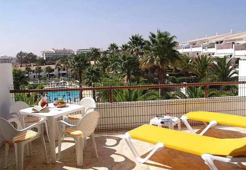This apartment complex is just a few kilometres from the town centre of Albufeira that features many shopping and entertainment venues. The complex is just 600 m from links to the public transport network and about 1,500 m from the splendid beach. The transfer time to Faro airport takes around 30 minutes, around 40 km away.||Comprising a total of 60 apartments, this complex includes lobby with a currency exchange desk and a bar.||The apartments come with a bathroom, a combined lounge/bedroom and separate bedroom. In the kitchenette guests will find a fridge and a washing machine. Further fittings include a hire safe, a TV, a direct dial telephone and a balcony or terrace.||There is a swimming pool in the outdoor complex with childrens pools and a snack bar as well as a tennis court. Guests are also able to relax on the sun terrace with sun loungers and parasols. An entertainment programme is additionally on offer to guests. The nearest golf course is 5 km away.