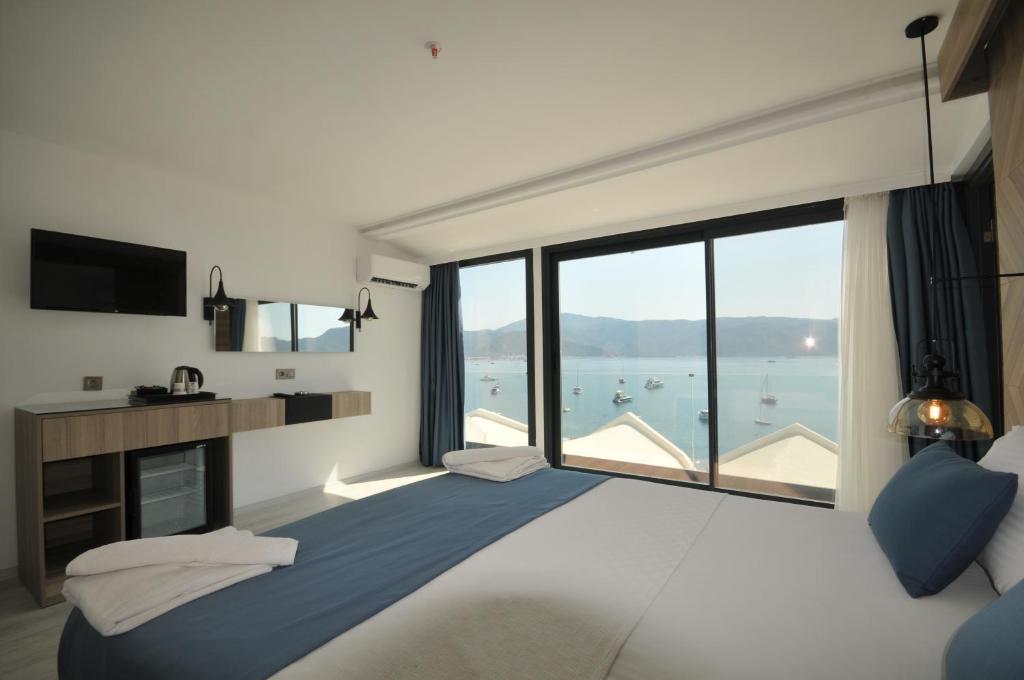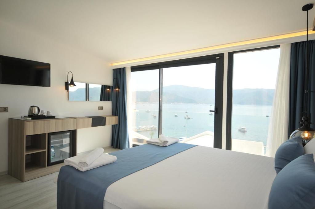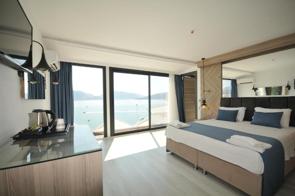 Situat pe propria plajă de nisip din Marmaris, acest hotel are o piscină in aer liber si un centru de fitness. Camerele au aer conditionat, balcon si zonă de relaxare.