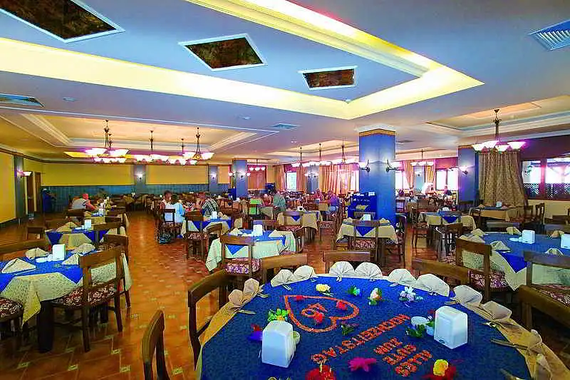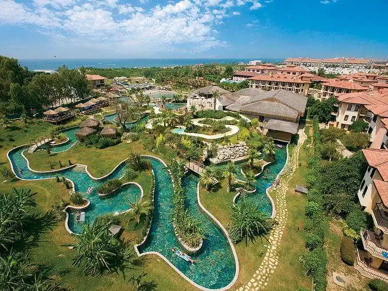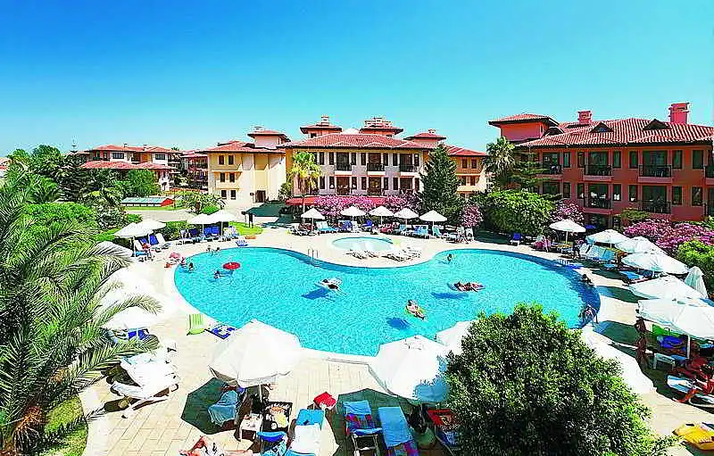 This family-friendly beach hotel is situated just 200 m from the centre of the resort of Colakli, which features a sandy beach. The historic town of Side is around 15 km from the holiday village and 15 km from Manavgat. The resort is approximately 55 km from Antalya Airport.||The hotel has been chosen as one of Turkeys top 10 most popular establishments among European families. The 5-star holiday village has several 3-storey blocks comprising 420 rooms in total. The complex is surrounded by beach expanses, deep blue waters, green tropical trees and diverse vegetation. The air-conditioned hotel welcomes guests into a lobby with 24-hour reception and check-out services and currency exchange facilities and offers a number of facilities, including a games room, TV lounge, childrens playground, kids club, bar, restaurant, conference facilities and, for an additional fee, Internet access and a laundry service.||The rooms are decorated in different styles, with details glorifying the hotels concept and increasing guests comfort. All rooms include central air conditioning units, a satellite TV, in-room safe, hairdryer, direct dial telephone and an en suite bathroom with bathtub. Guests may also relax on their private balcony or terrace.||The hotel offers a total of 4 swimming pools, including one indoor pool and three outdoor with a childrens swimming area, as well as a sun terrace with parasols. Guests may also work out in the gym, relax in the sauna, or play table tennis. Leisure activities available for an additional fee include spa and massage treatments, waterskiing, jet skiing, motor boating, banana boating and tennis. Parasols are also available on the nearby sandy beach.||Guests can select their lunch and dinner from buffets or choose the à la carte option. Lunch is also available from set menus. The hotel offers all-inclusive packages.