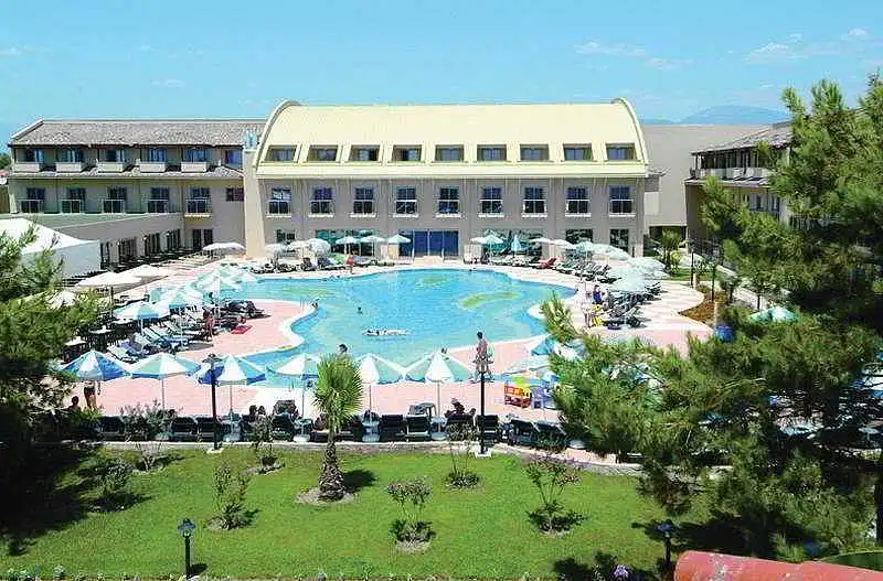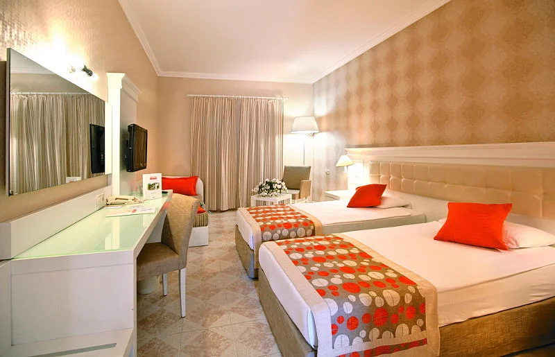 This family-friendly beach hotel is located just 1 km from the centre of the resort of Kizilagac. It is around 15 km from Side, approximately 12 km from Manavgat and roughly 80 km away from Antalya Airport. The holiday village is built on an area spanning 100 acres and offers guests a peaceful and happy holiday. The hotel establishment comprises a total of 590 rooms. The air-conditioned hotel welcomes guests into a lobby with 24-hour reception and check-out services, a hotel safe and currency exchange facilities. Further amenities include a hairdressing salon, a café, a bar and a restaurant. Conference facilities and Internet access are also available. The hotel has rooms housed in the main building as well as bungalow-type rooms designed in an Ottoman architectural style. Each room comes fully-equipped as standard including a satellite TV, a minibar and a balcony or a terrace.