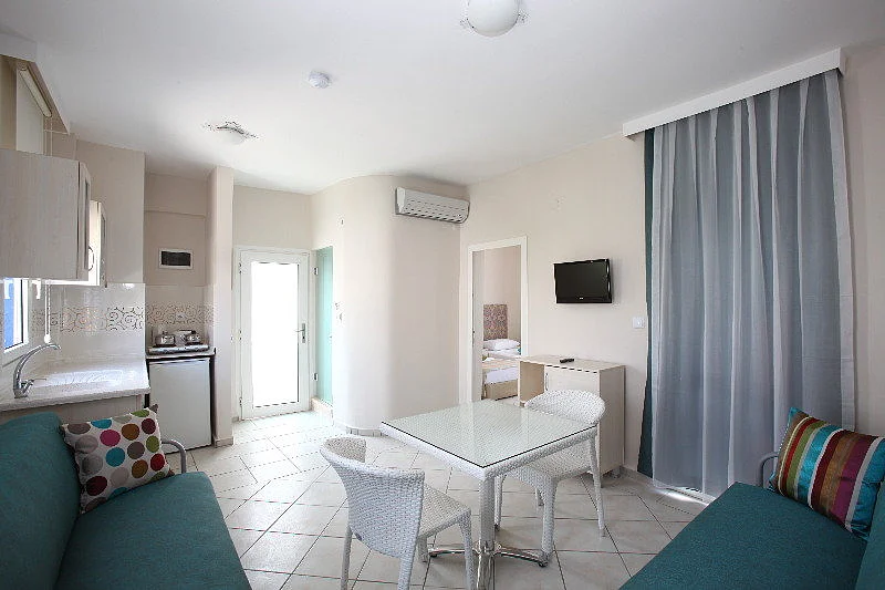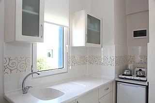 The apartments are located above Gumbet, just 700 m from the sandy beach and situated around a spacious pool. The resort's centre is 400 m away and the cosmopolitan resort of Bodrum is just 2.5 km away and can be easily reached by public transport, which runs directly in front of the complex. Milas-Bodrum Airport is approximately 38 km from the establishment. Set in spacious and luscious gardens with a uniquely shaped swimming pool, the apartment hotel offers numerous facilities. The apartments are decorated in cool tones with modern furnishings and equipped with all the amenities required for a comfortable stay. Guests can enjoy a refreshing dip in the outdoor swimming pool with children's swimming area or relax with a drink at the poolside snack. Pool/snooker facilities are available.