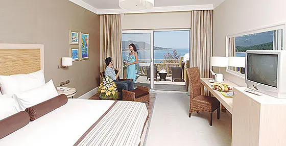 Camerele sunt dotate cu baie sau dus, foehn, aer conditionat individual, televizor, telefon, mini-bar, seif (in camera, gratuit), pardoseala cu mocheta sau gresie (Club), gresie si parchet laminat (Phaselis Hill), balcon sau terasa (nu in toate camerele), internet wireless.