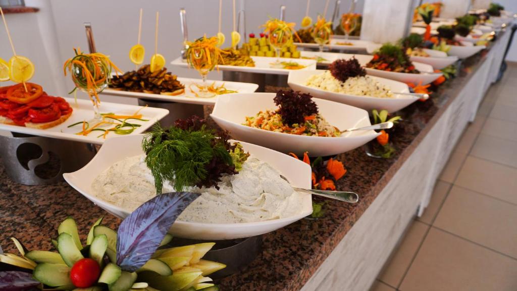 Locurile unde se poate lua masa cuprind o cafenea, un bar și un lobby bar. Clienții vor găsi ospitalitate și o ambianță plăcută in cele 4 restaurante pentru nefumători. Băuturile răcoritoare de la barul de pe plajă creează momente minunate. Se oferă spre rezervare regim all inclusive. Se oferă micul dejun, pranzul și cina. La cerere pot fi pregătite feluri de mancare dietetice, meniuri pentru copii și alimente bio. Mancarea pentru bebeluși (la cerere) contribuie la starea de bine a celor mici. De asemenea, locul de cazare pune la dispoziție gustări. Băuturile alcoolice și nealcoolice sunt gratuite pentru clienți.