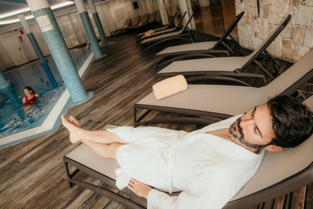 Camerele spațioase sunt decorate in tonuri mediteraneene și dispun de balcoane private, multe dintre ele cu vedere spre mare. Facilitățile premium includ o piscină infinity cu șezlonguri și umbrele, un centru spa cu saună și zone de tratamente, precum și un restaurant à la carte cu specific mediteranean.