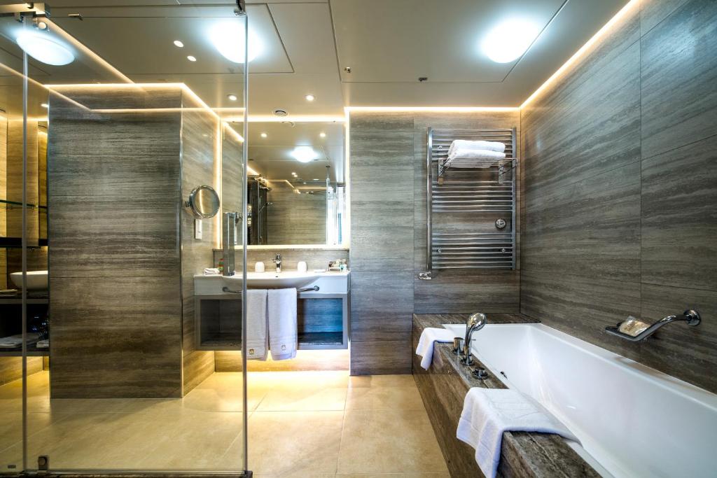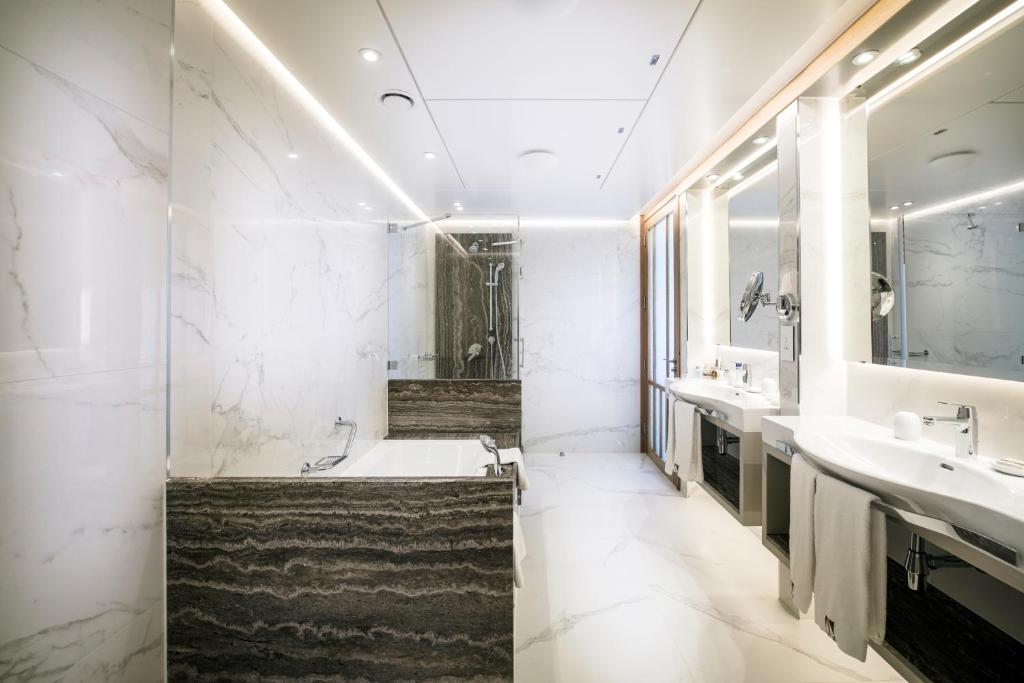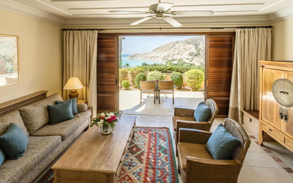 Toate suitele au podele din piatră, mobilier și obloane din lemn natural și ventilatoare de tavan pentru a le menține răcoroase. Fiecare are balcon cu vedere la grădini sau la mare. Facilitățile includ aparate de cafea Nespresso, articole de toaletă Molton Brown, halate de baie și papuci.