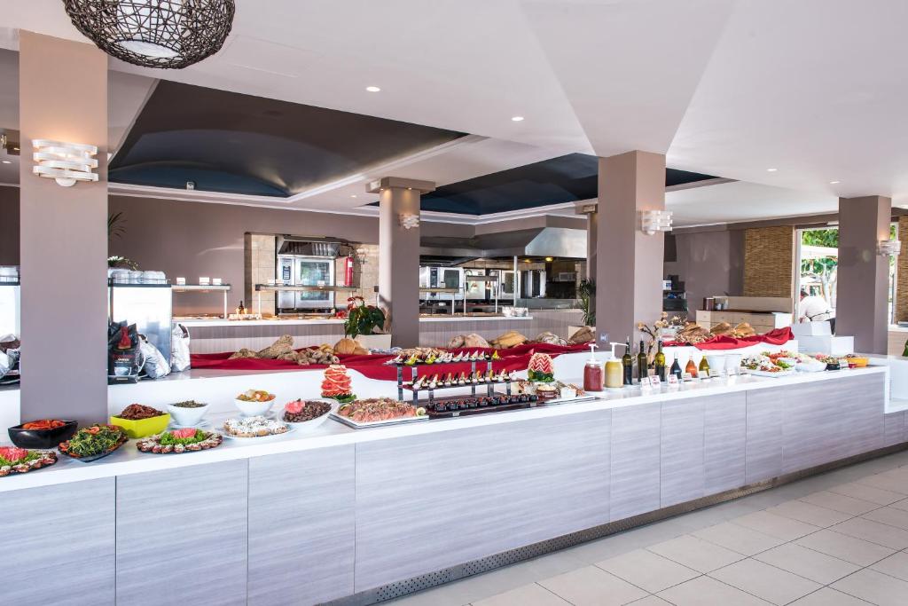 Proprietatea servește un mic dejun tip bufet, continental sau englezesc/irlandez complet. Corissia Beach hotel are un restaurant care servește mancăruri din bucătăria franțuzească, grecească și italiană. La cerere, sunt disponibile și preparate vegetariene, fără lactate și vegane.