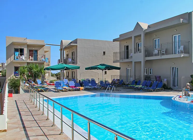 Hotelul este situat in statiunea Malia, la 32 km de aeroportul International din Heraklion. Plaja lata de nisip se afla la 750 m distanta. Sezlongurile si umbrele sunt contra cost, aproximativ 7 eur / zi ( 2 sezlonguri si o umbrela ). Statia de autobuz se afla la o scurta distanta de hotel.