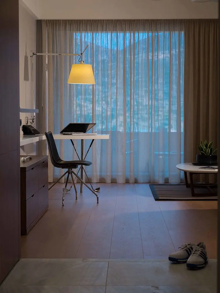 The hotel consists of 25 suites, 23 of 45sq.m. and 2 of 75sq.m. all with a sofa bed and large balconies all with Mountain and Sea View. Marble bathroom of 18sq.m., smart TV 55?, private ultra high speed WiFi, extra-long beds of 210cm x 200cm. Common areas include a fitness center with ?Technogym? equipment and an outdoor pool of 25m length. Restaurant offers à la carte and buffet breakfast. The Golf Hotel will remain open all-year round.