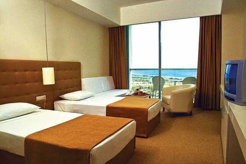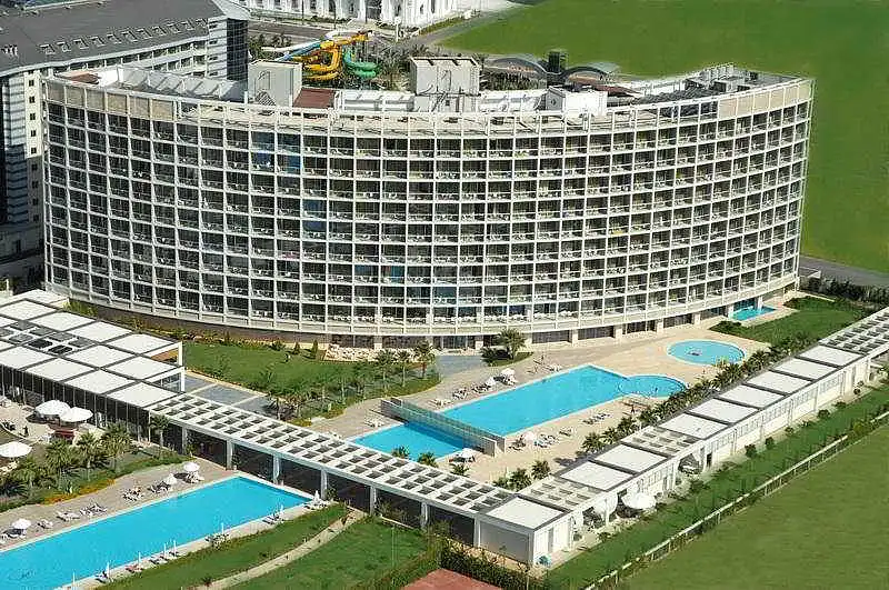 Situated on 39,500 m2, the luxurious beach hotel Kervansaray Kundu enjoys a wonderful frontline location in the popular holiday destination of Lara on the Turkish Riviera, famous for its beautiful sandy beaches. The centre of Antalya, the regional capital, with its old town, harbourside, countless shopping opportunities and entertainment venues is only a few minutes away by car. |The family-friendly hotel with its distinctive architecture welcomes guests in a stylish lobby and features modern, elegant rooms, many of which boast marvellous views over the garden and the sea. This hotel is a heaven for the little ones, as it offers an own childrens world with pools, water slides, playgrounds, mini amusement park, childrens buffet and much more. The unique pool area includes a wave pool and an aquapark. Fun and relaxation for the whole family are guaranteed in this magnificent place.|