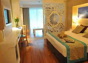 restaurant principal, 6 restaurante a la carte, baruri (la piscina, lobby bar, vitamin bar, night club etc), piscina interioara, piscine exterioare pentru adulti si copii, aquapark cu 12 tobogane cu apa, miniclub (4-12 ani), teenage club (13-16 ani), centru fitness, centru SPA de 1000 mp, sauna, hammam, 2 terenuri de tenis, volei pe plaja, tenis de masa, aerobic, darts, boccia, mini fotbal, cinema (capacitate de 80 pers), 2 sali de conferinta, wireless free.