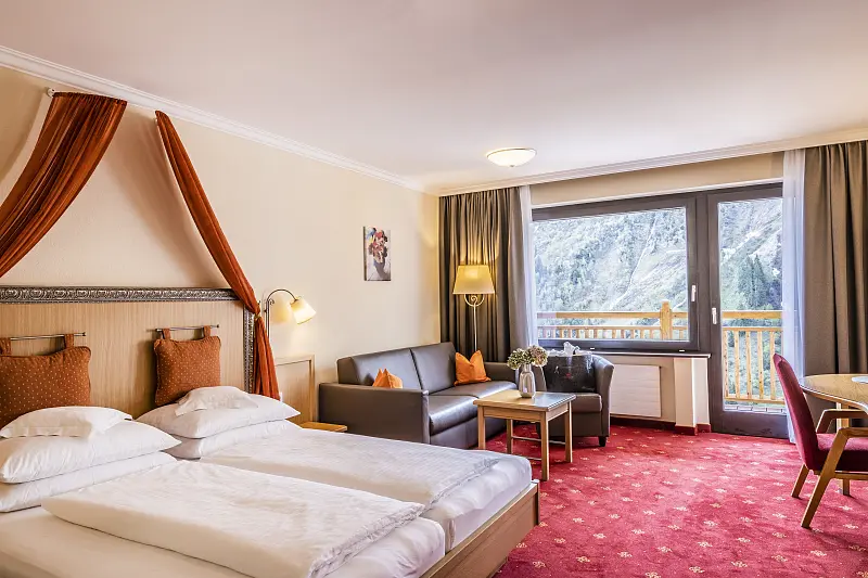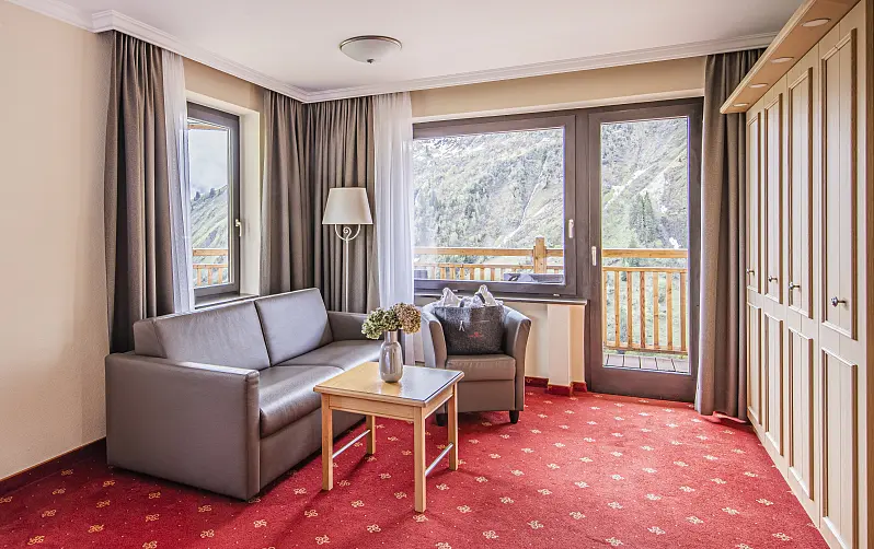 The Damülser Hof is a family-run 4-star superior hotel at over 1,500 meters above sea level in the Bregenzerwald. The hotel offers a wonderful panoramic view, comfort and warmth for unforgettable holiday experiences in the Alps. Here you can discover breathtaking summit experiences and an incredible atmosphere in the mountains. The hiking and biking trails start right outside the hotel door. In the hotel's Luwafeer Spa you can find rest and relaxation and there is an infinity outdoor pool, a panoramic indoor pool and various saunas and relaxation rooms. In the restaurant, chef Christoph Klauser and his team pamper you. Together they bring the best quality and good taste to the plate with great attention to detail, regional products and careful handling of the food. Room A-Double Room Standard Balcony/Terrace Mountain View (DB01) has a wooden or carpeted floor. Room B-Double Room Comfort Balcony/Terrace Mountain View "Sonnenhang" (DB02) and D-Double Room Standard "Nord" (DB04) have carpeted floors. facility / Ambiance: comfortable, sustainable, family friendly, modern, suitable for children target audience: sport & active travellers, honeymooners, couples, motorcycle travellers, nature lovers, senior citizens, shorttrip travellers, wellness travellers, young travellers, mountainbiker / bicycle travellers, families, food lovers, homosexual, long term tourists
