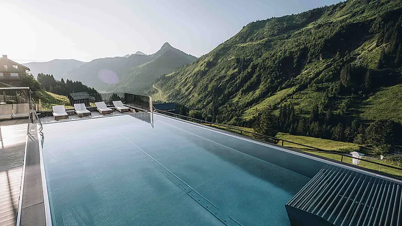 Here you can discover breathtaking summit experiences and an incredible atmosphere in the mountains. The hiking and biking trails start right outside the hotel door. In the hotel's Luwafeer Spa you can find rest and relaxation and there is an infinity outdoor pool, a panoramic indoor pool and various saunas and relaxation rooms. In the restaurant, chef Christoph Klauser and his team pamper you. Together they bring the best quality and good taste to the plate with great attention to detail, regional products and careful handling of the food.