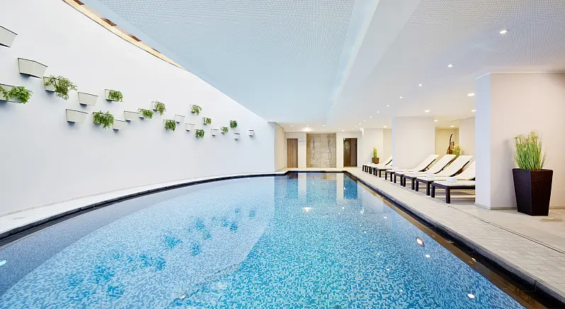 size wellness area 600 m², swimming pool area: children of 0 years. only in the company of an adult - free of charge, indoor swimming pool 12 m x 3 m, spa area - free of charge, steam bath, sauna, finish sauna, relax room 2x