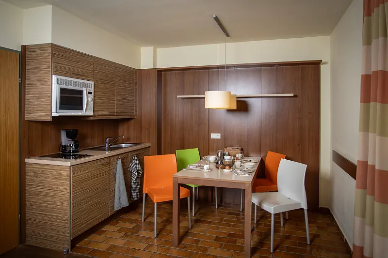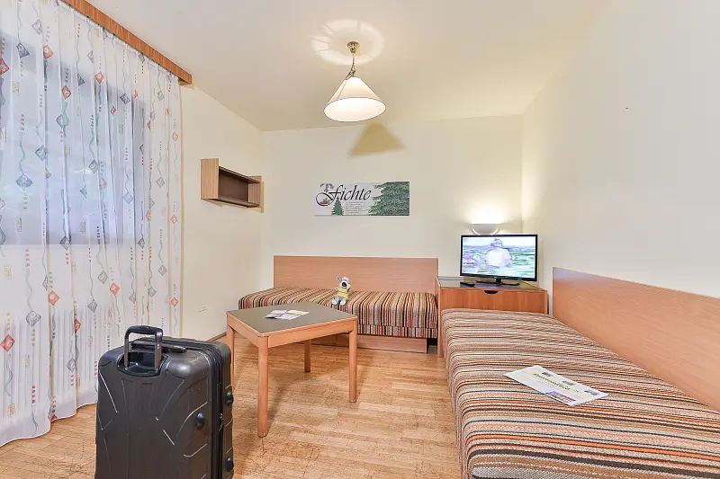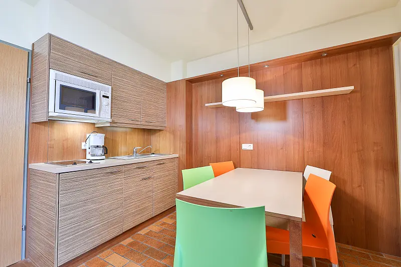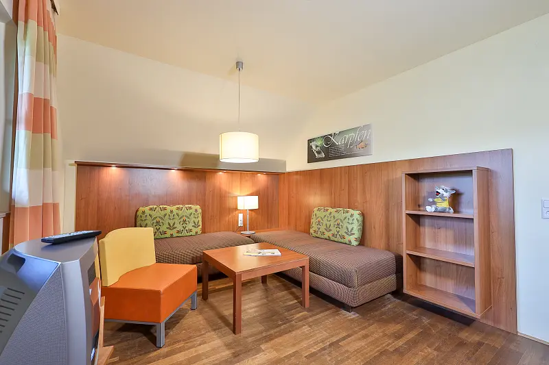 In the Maltschacher See holiday village, the holiday sun tickles your nose in the early morning and awakens anticipation of a perfect holiday day on the beautiful, warm Maltschacher See. The picture-book backdrop of the Nockberge impresses young and old. Here in the spacious resort there are holiday ideas for the whole family. The resort is also very popular with different groups. Type A: Family room "Buntspecht" as we call it is a family apartment for 4 people with the option of an extra bed, i.e. 5 people. The apartment is always located in the rear part of our resort in the Walddorf. This means a little further away from the restaurant, lake and main building. However, it is quietly located for guests who like to be in nature or want to take a leisurely walk. Type B: Family room "Wildente" as we call it is also a family apartment for 4 people with the option of an extra bed, i.e. 5 people. The apartment is always located in the front part of our resort in the Seedorf. This means shorter routes to the restaurant, lake and main building. The facilities are more modern.