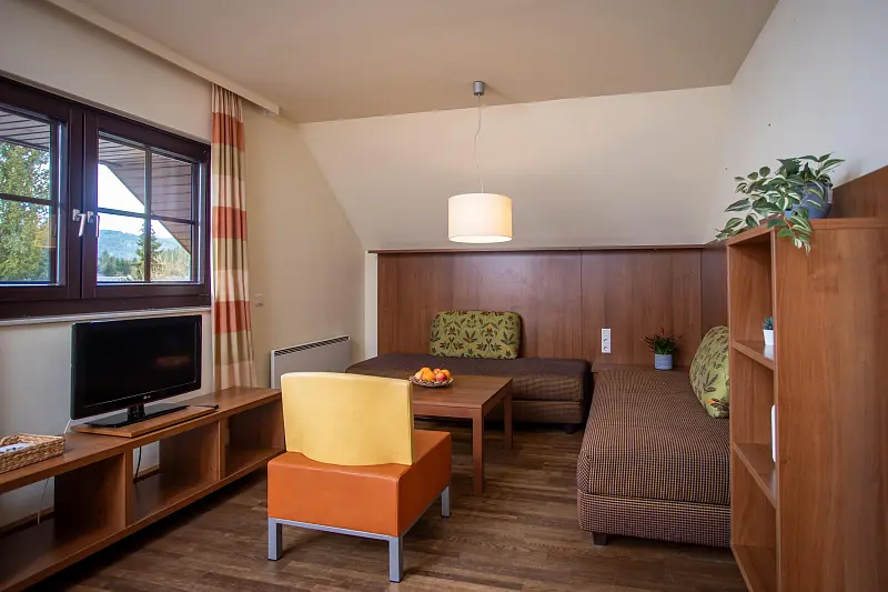 Type A: Family room "Buntspecht" as we call it is a family apartment for 4 people with the option of an extra bed, i.e. 5 people.