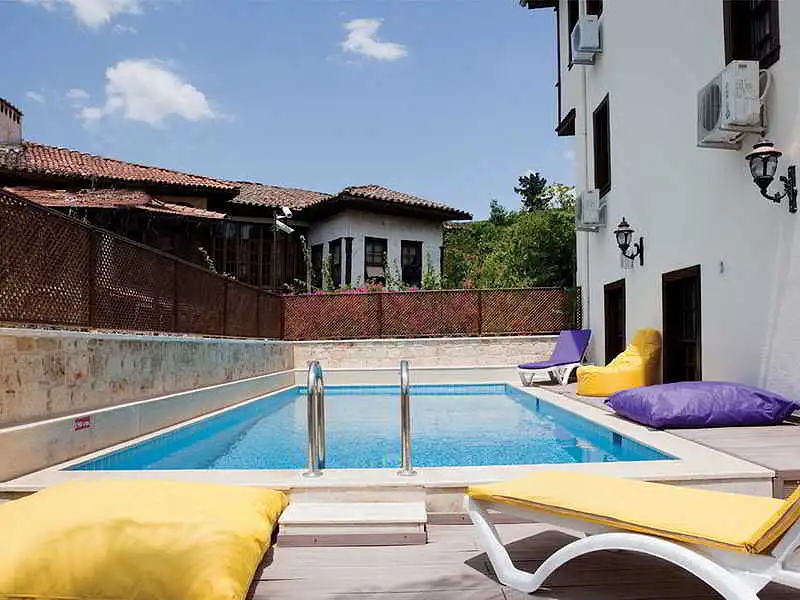 This whimsical boutique hotel is situated right in the centre of Antalyas old town, known as Kaleici, making it easy for guests to explore this ancient city. Visitors can admire Hadrians Gate and Hidirlik Tower, both less than a 10-minute walk from the hotel, and professional and friendly hotel staff are happy to help organize boat trips and sightseeing tours. The hotels 15 elegant rooms are comfortably and simply furnished with dark wood accents, all equipped with satellite TV, air-conditioning and free WIFI. Guests can wake up to an indulgent breakfast in bed with room service, or enjoy a wholesome buffet breakfast in the hotel restaurant, where lunch and dinner are offered from a set menu. Guests may also dine al fresco by the sparkling outdoor pool and relax in the hotels sauna. With its unbeatable location and charming décor, this hotel is the ideal base from which to discover Antalya.