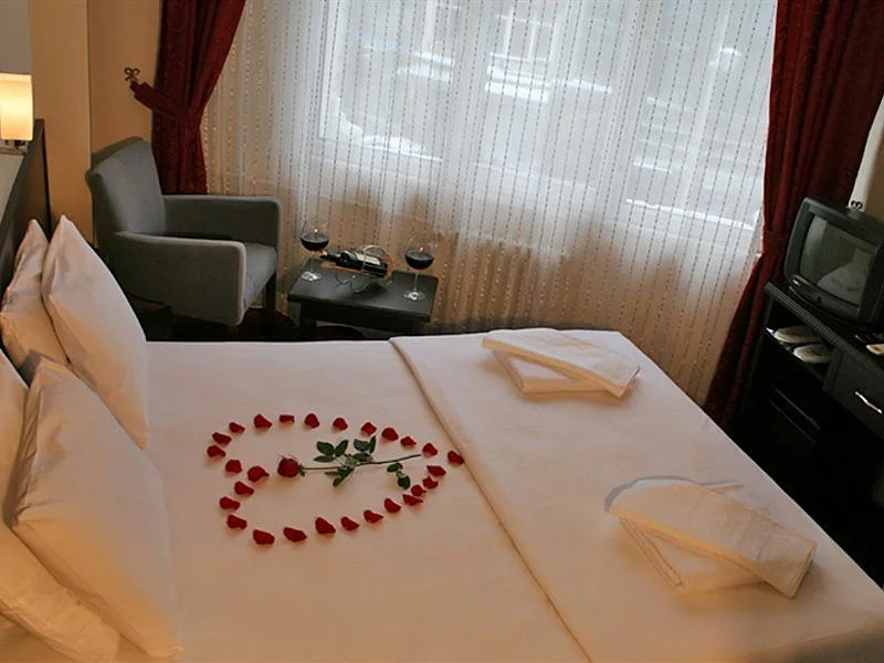 Facilities and services include restaurant, bar, 24 hour reception, terrace, elevator, wireless Internet access and parking.Rooms feature TV, telephone, wireless Internet access, air conditioning, safe, mini bar, coffee and tea maker, bathroom, hairdryer and slippers.Address: Fethibey Cad. Aga Yokusu No:2 Laleli, Istanbul, Turkey.