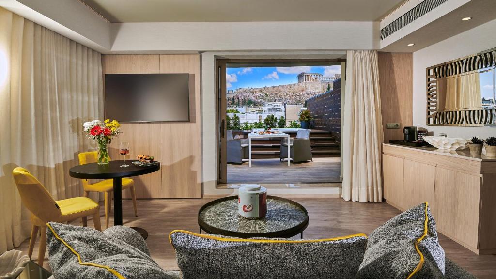 Divani Palace Acropolis oferă camere elegante si o terasă pe acoperis cu vedere impresionantă la Acropole. Hotelul este la cativa pasi de noul Muzeu Acropole si de Odeonul lui Herod Atticus.