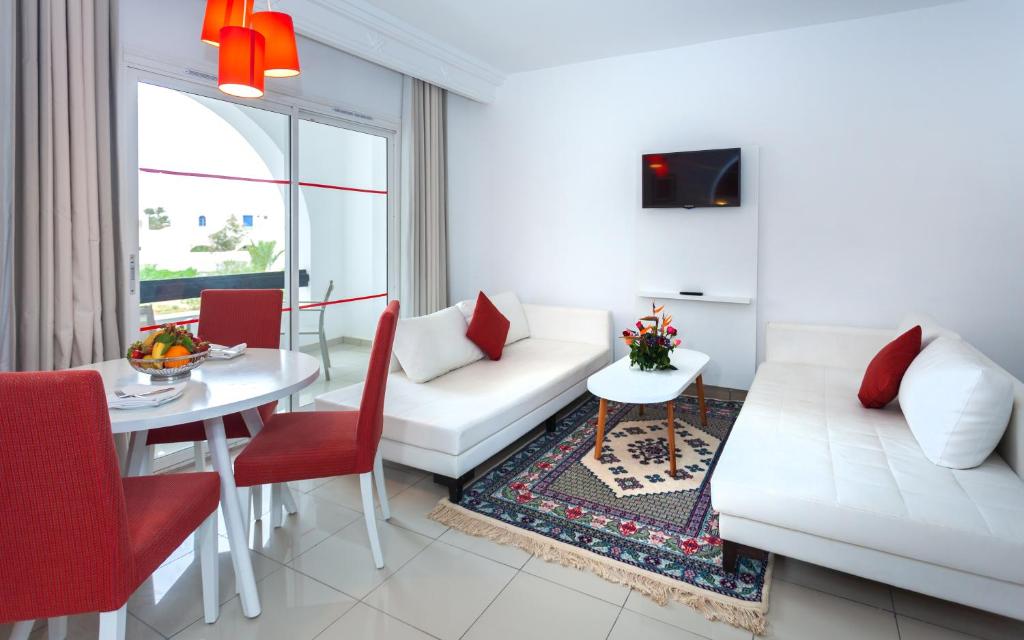 Djerba Holiday Beach se află aproape de plajă și la doar 19 km de Aeroportul Djerba. Acestea oferă camere cu aer și terasă sau balcon cu vedere la mare și la grădină.