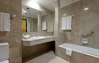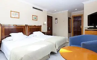 1 : This hotel is situated directly in the tourist centre and only 800 m from the nearest beach. Shopping venues, restaurants and bars may all be found only 50 metres from the hotel. Public transport departs from a stop approximately 100 m from the hotel. It is 10 km to the airport. A main road is located nearby. Renovated in 2004 this city hotel includes a foyer, a currency exchange facility and a lift. Other facilities include a café, a bar and an air-conditioned à la carte restaurant. Business guests may use the conference room with an Internet terminal. The hotel additionally offers a room and laundry service for guests. The lush, welcoming rooms are en suite and fitted with a hairdryer. They are equipped with a direct dial telephone, satellite/ cable TV, a sitting area and a minibar.