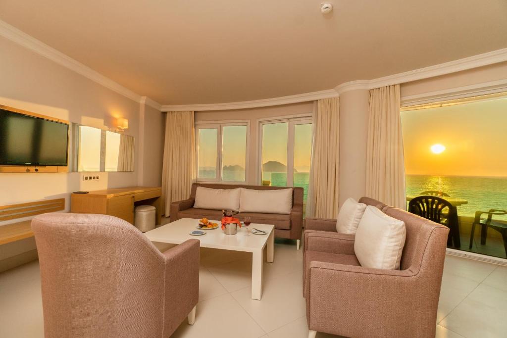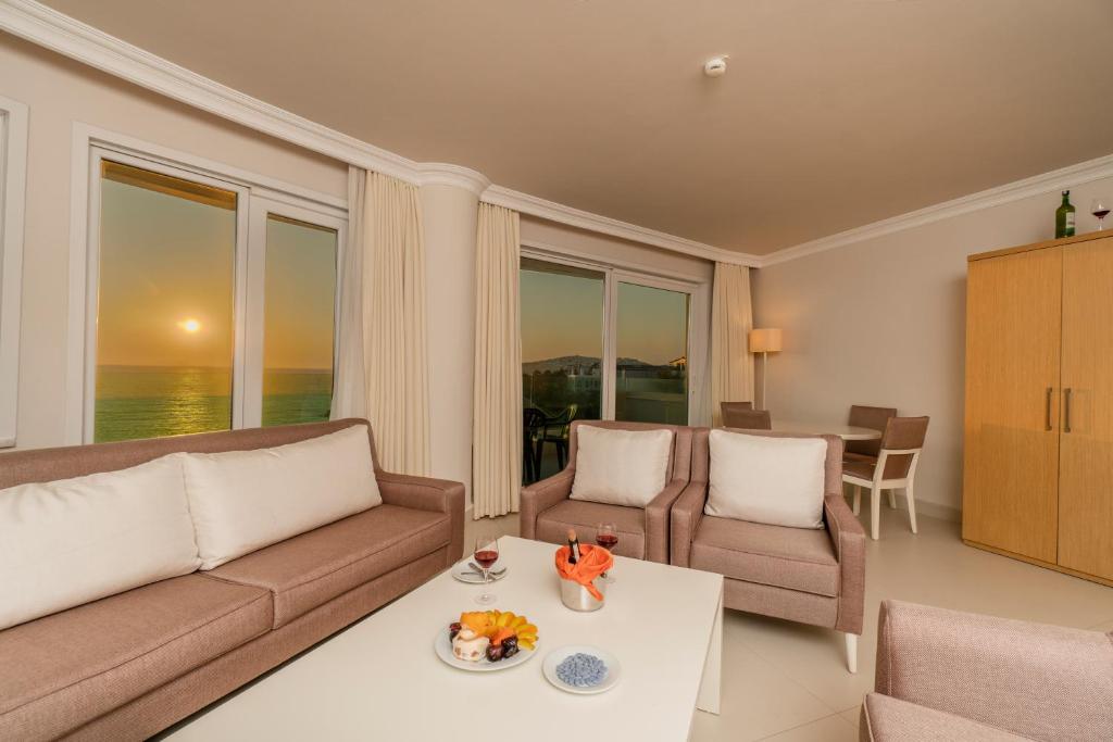 In camere există un aparat de aer condiționat și un sistem de incălzire. In majoritatea spațiilor de cazare clienții beneficiază de vedere spre mare de pe balcon sau de pe terasă. Camerele au un pat dublu. Pot fi solicitate paturi suplimentare. De asemenea, sunt disponibile un seif, un minibar și un birou. Clienții au parte de mai mult confort și datorită setului de călcat. In plus, există un telefon, un televizor cu ecran plat cu canale prin satelit și WiFi (gratuit). In cameră se găsesc și papuci de casă. Băile sunt dotate cu un duș, o cadă și o cadă cu hidromasaj. Un uscător de păr și halate de baie sunt disponibile pentru folosința zilnică. Articolele de cosmetică creează un confort deosebit in băi. Mai stau la dispoziție și camere adaptate pentru scaun cu rotile, cu baie fără bariere.