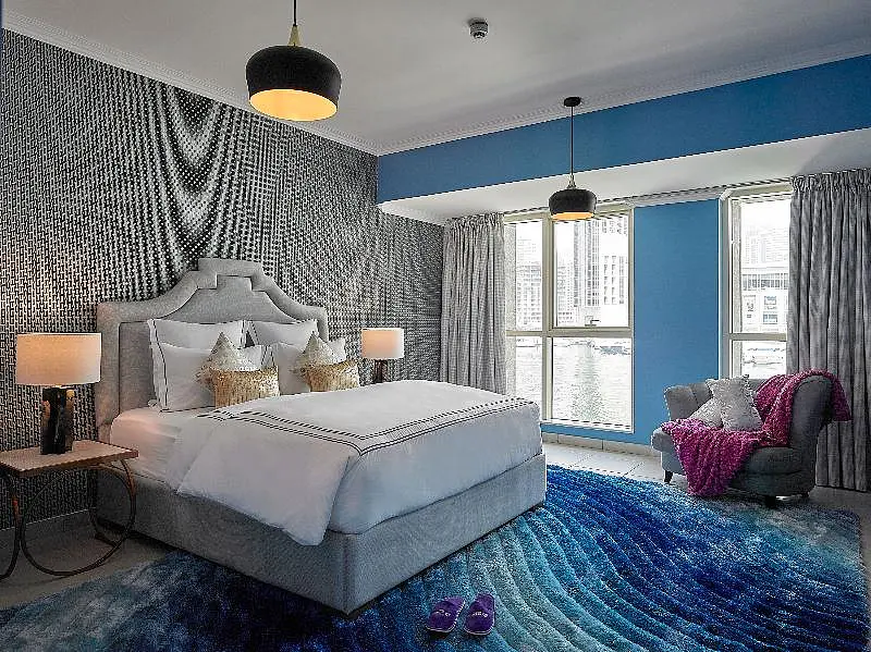 This modern, artistic apartment is the ideal getaway for families traveling to Dubai with children. The apartment is two stories, completed with two bedrooms, two bathrooms, and stunning views of the Dubai Marina and city skyline. Standing out on the balcony, you will see beautiful views of the Dubai Marina, filled with yachts, overlooking the lake and energetic streets of the city. Keeps the children entertained with their own private media room.This modern, artistic apartment is the ideal getaway for families traveling to Dubai with children. The apartment is two stories, completed with two bedrooms, two bathrooms, and stunning views of the Dubai Marina and city skyline. Standing out on the balcony, you will see beautiful views of the Dubai Marina, filled with yachts, overlooking the lake and energetic streets of the city.