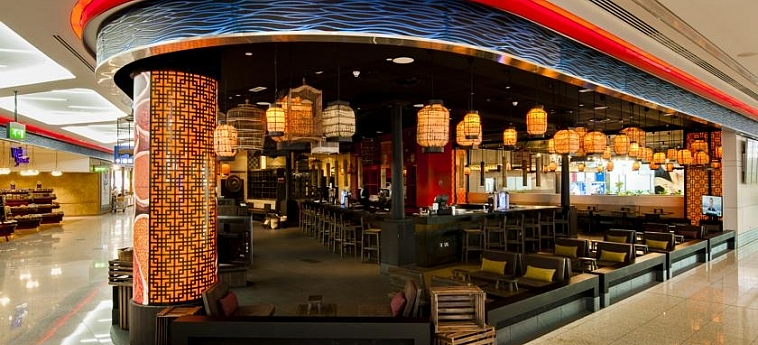 general: The 5-star Dubai International Terminal Hotel is located on the Arrivals level of Sheikh Rashid Terminal and offers luxurious accommodation along with great services and facilities. The hotel has a state-of-the-art business centre with the latest audio-visual technology. There is also the G-Force Health Club & Spa, and several gourmet dining choices are available. All accommodation is well equipped, modern and warmly decorated. Guests who book a stay at this hotel can not leave the airport, nor can they retrieve their luggage. Guests, since the passport control, can no longer access the hotel.
