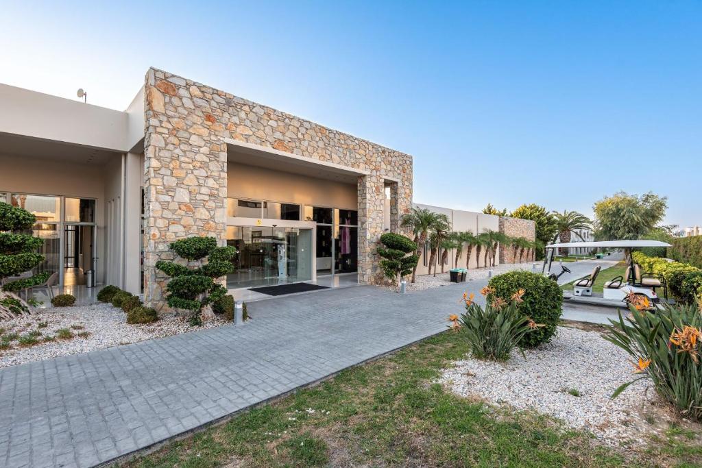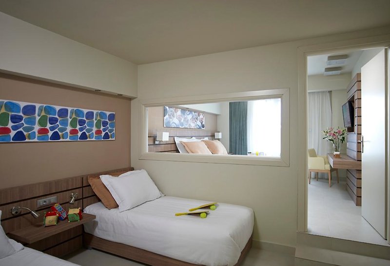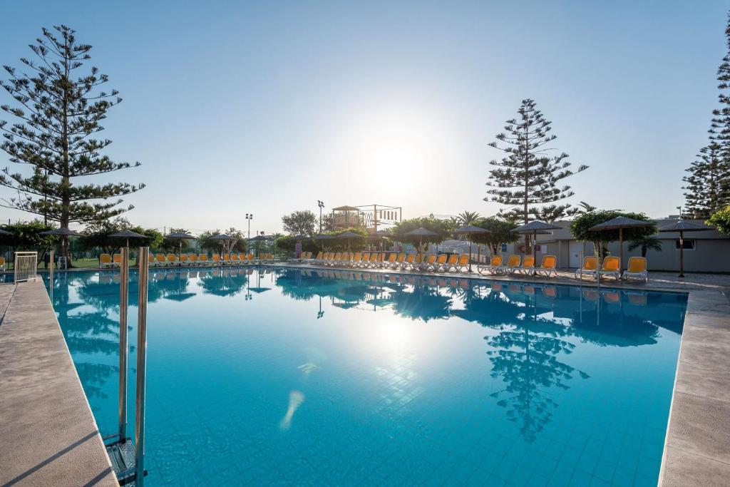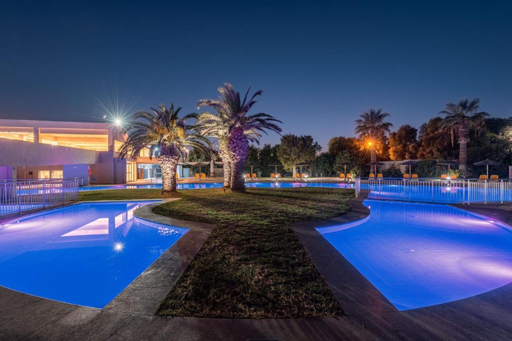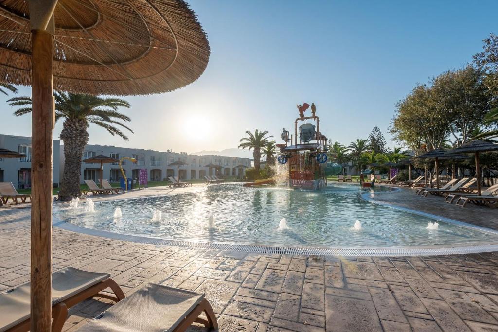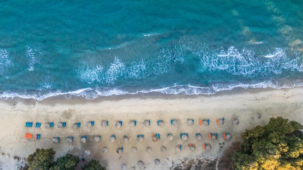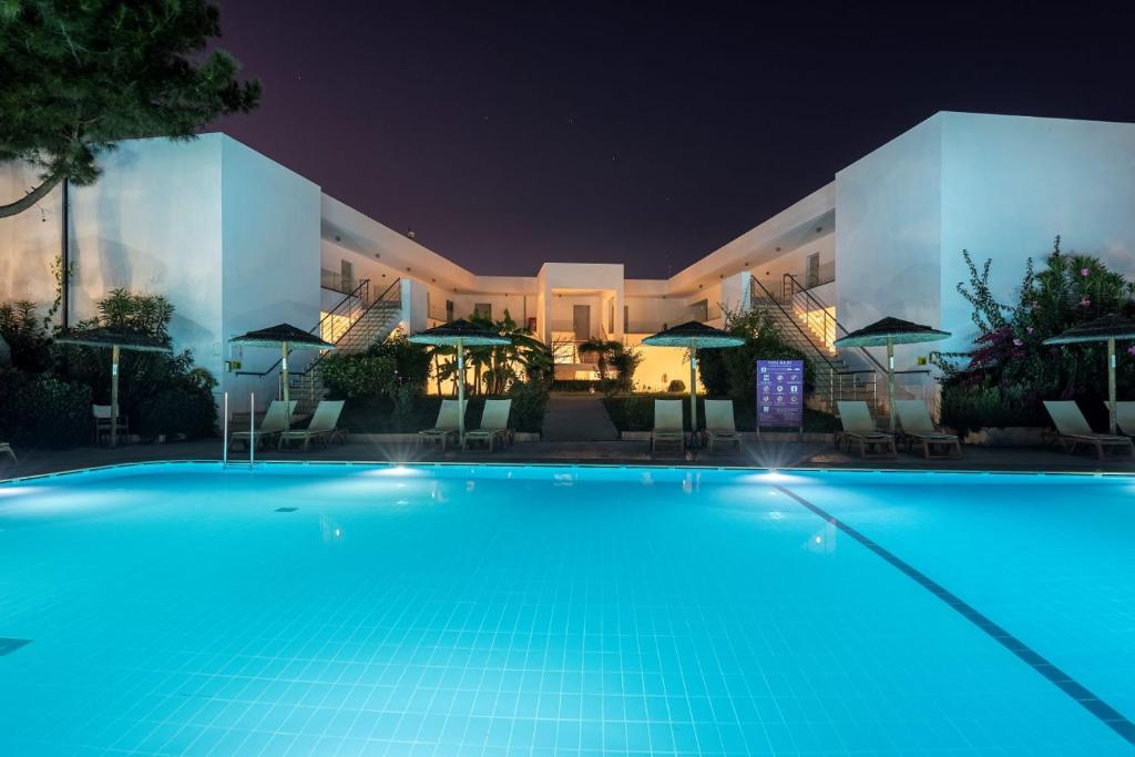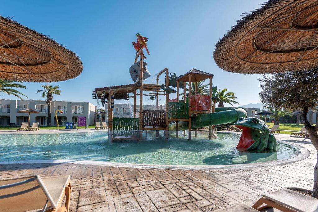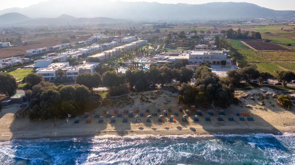 Satul de vacanță, ideal pentru familii, se află la Marmari, chiar pe malul mării.