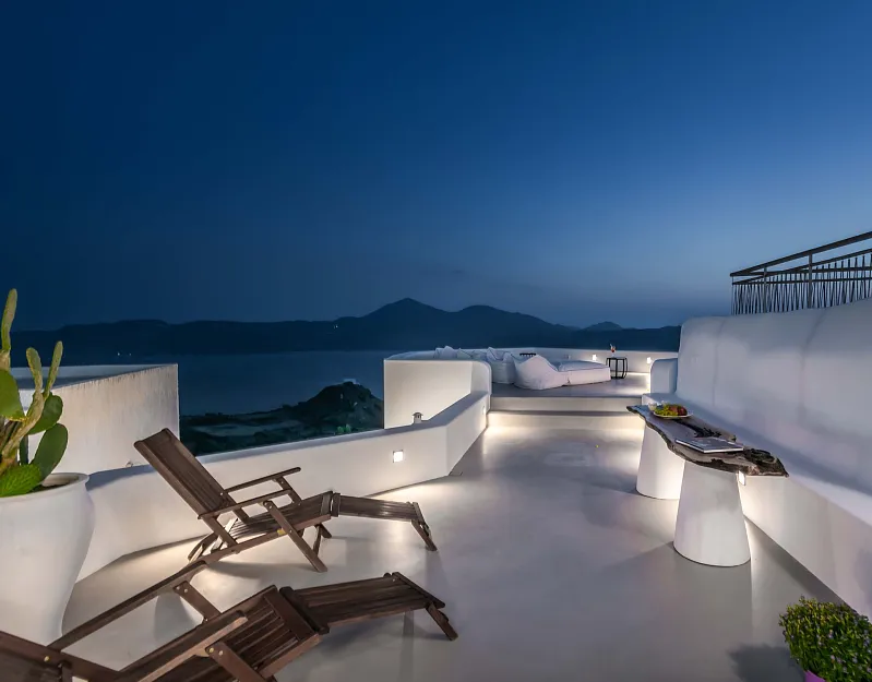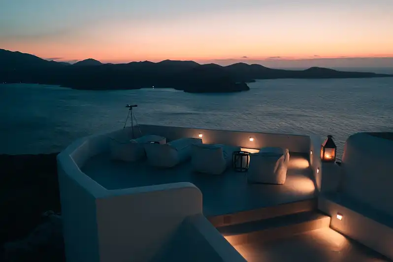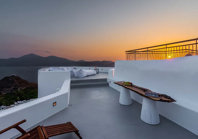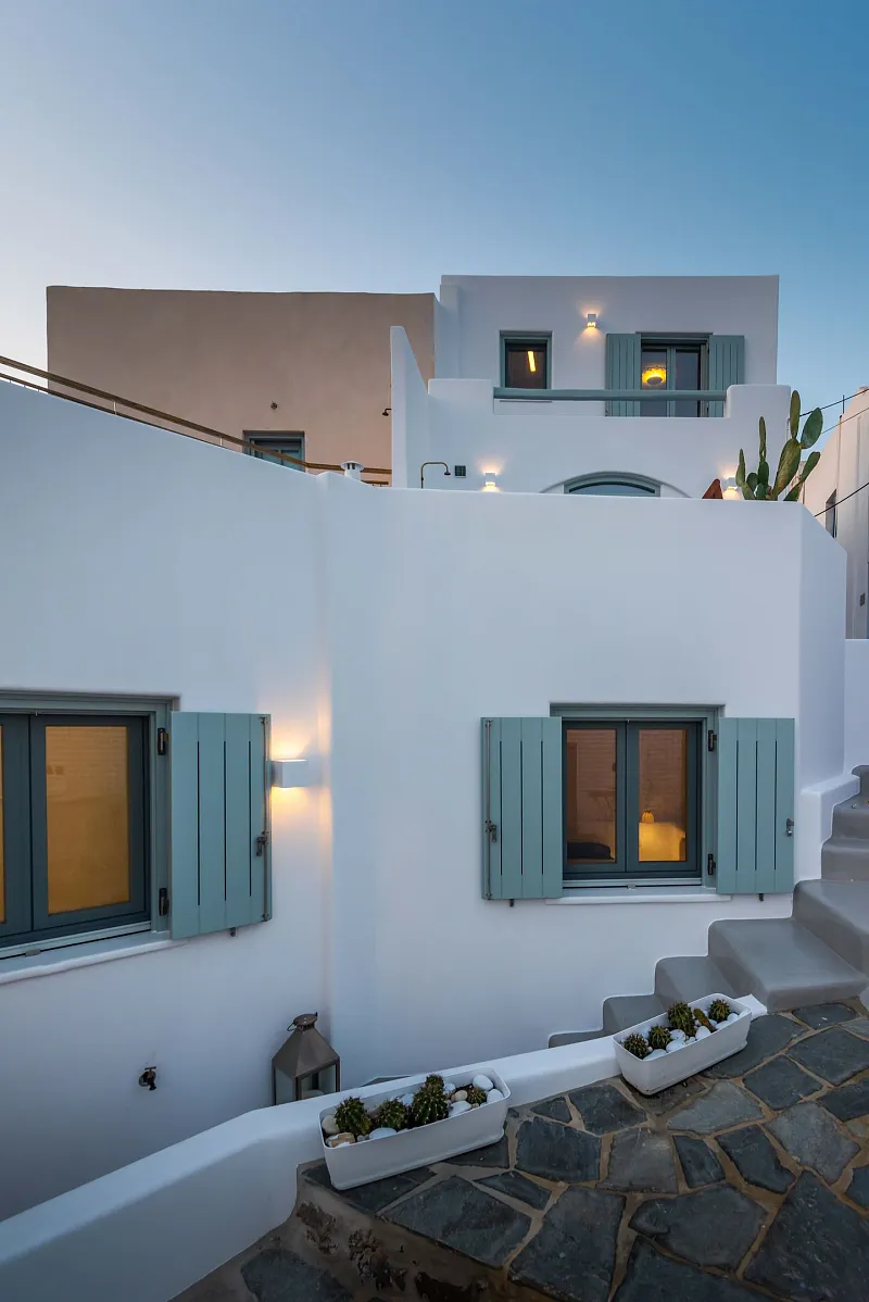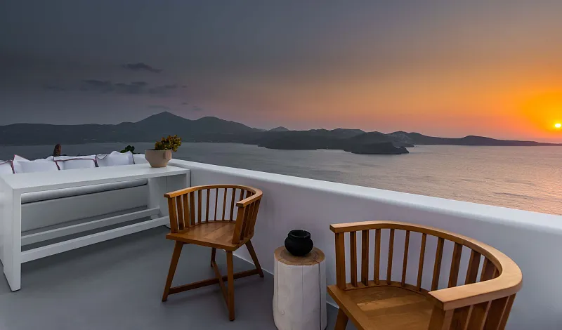 This is a unique complex of two residences located at the cliffside location of the traditional village of Plaka (the capital of Milos). Hanging at the edge of the settlement our guests will be able to enjoy a "caldera-like" view and magnificent sunset but without the crowds.