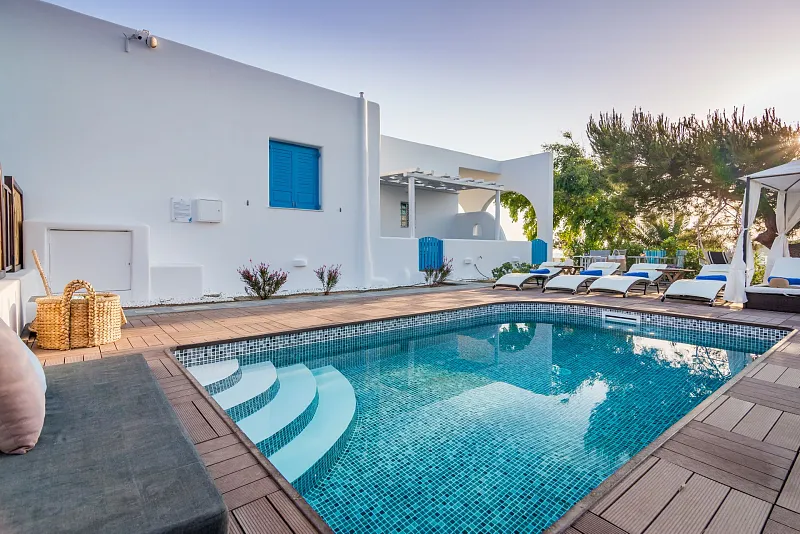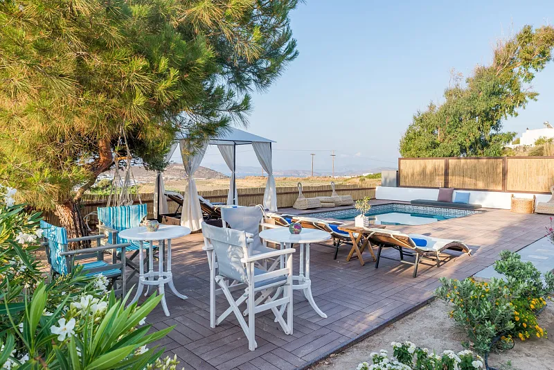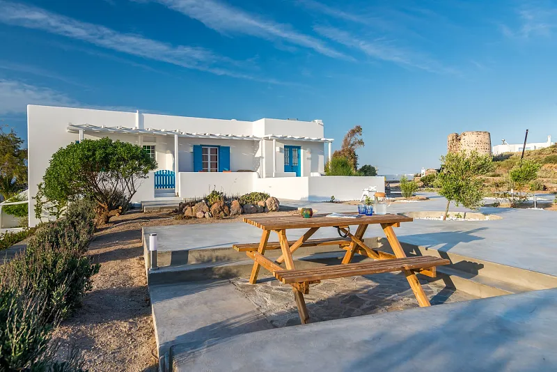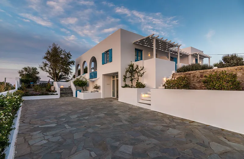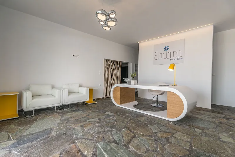 Eiriana Luxury Suites is a unique luxury accommodation located close to the traditional windmills of Milos, on the hilltops of Trypiti village. Boasting 6 spacious suites with panoramic views of the beautiful island, this ‘boutique’ establishment has been designed to offer the ultimate in luxury, exclusivity, comfort and tranquility. Blending the traditional with the modern and inspired by the Aegean ‘winds’, Eiriana fuses the Cycladic white-washed with vibrant colours and textures, to create a unique experience for those seeking a relaxing escape.