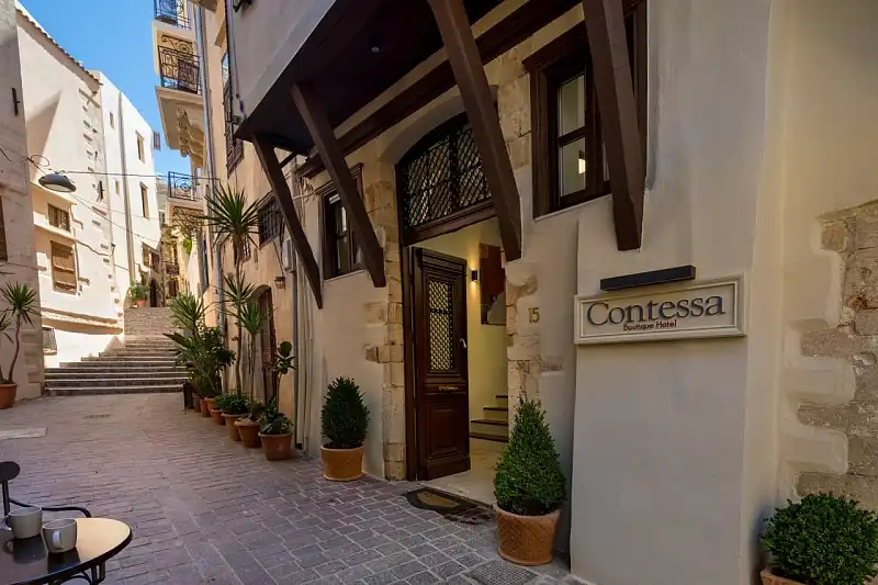 ELG Contessa Boutique Hotel consists of six beautiful rooms. Three of them are overlooking the venetian port of Chania, with full sea view, one has partial sea view and two rooms are with no view, in the back side of the building.